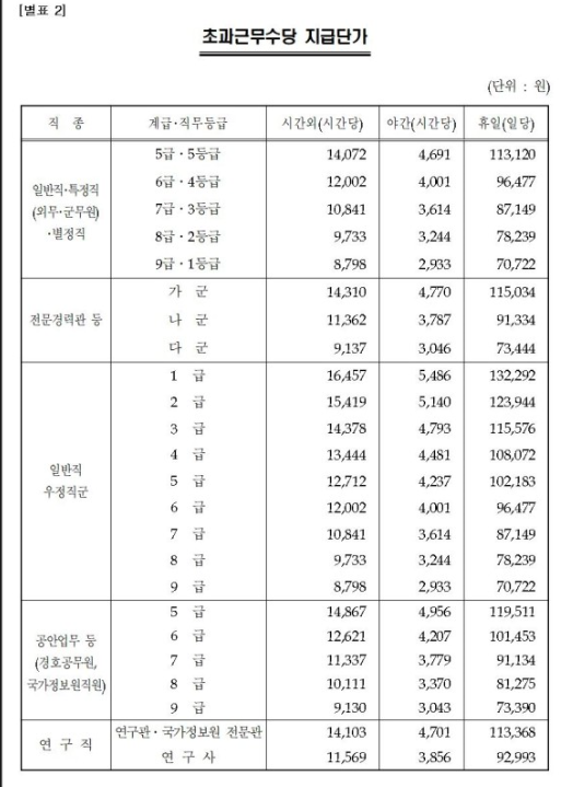 아무튼 이 글에서는 2021 공무원 초과근무수당 단가표를 올려놓겠습니다.
