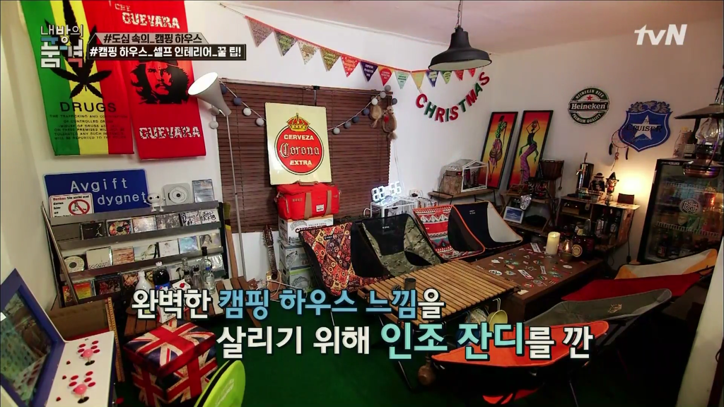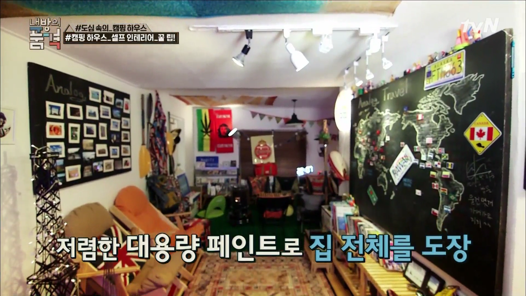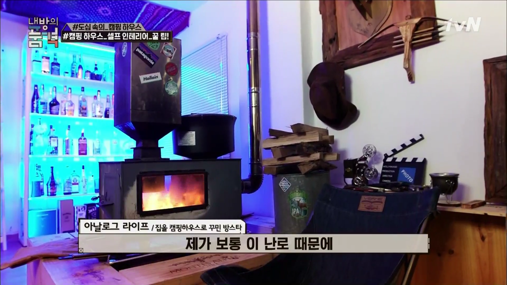 내방의품격 캠핑하우스 방스타 아날로그라이프 화목난로 칠판페인트 조색. 기린아줌마 0원인테리어 행잉화분