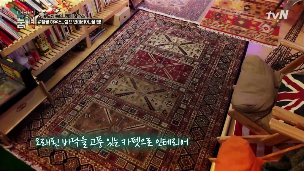 내방의품격 아날로그라이프 님의 캠핑하우스 바닥은 별다른 시공 없이 두바이 여행 중 월마트에서 6만원에 구입한 카페트로 그냥 덮어 버렸다.