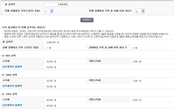 제가 임의대로 240만원의 월급을 넣고 시험삼아 해봤는데, 아래와 같은 결과가 나왔습니다.