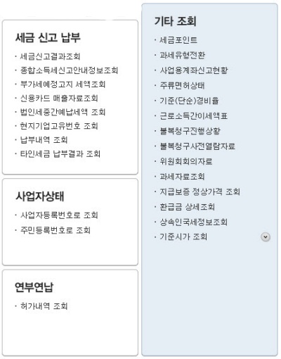 위는 홈택스 메인화면입니다.