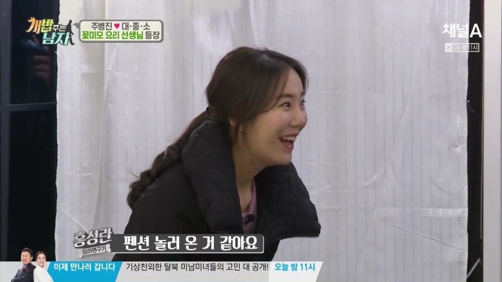홍성란 요리선생님은 펜션에 놀러온 거 같다고 말하네요.