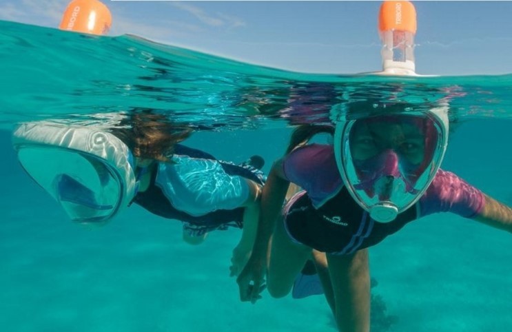 류준열이 스노클링을 하면서 쓰고 있는 마스크는 스노쿨링 마스크로 트리보드 이지브레스라는 상품입니다.