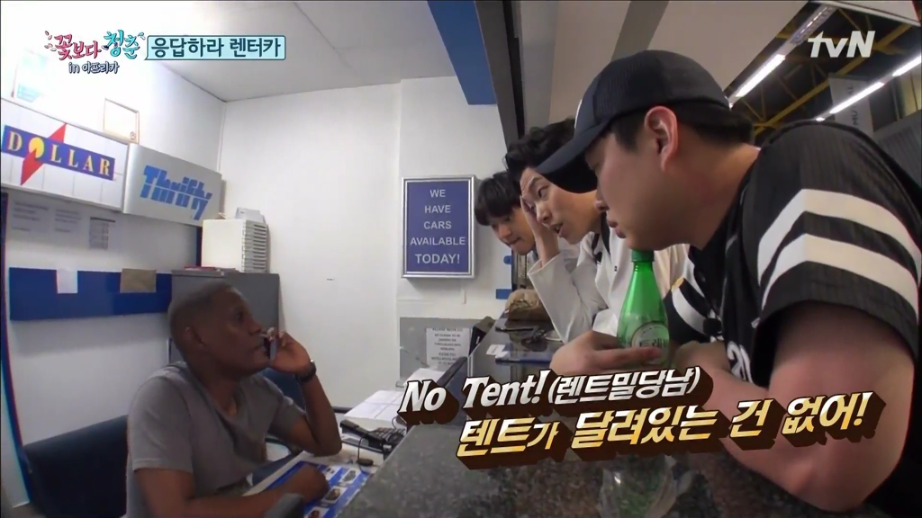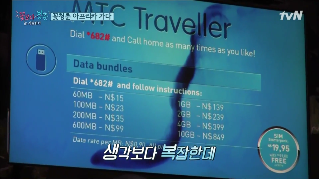 21시간의 여정 끝에 나미비아에 도착한 일행은 일단 환전하고 데이터로밍을 위해 유심을 빌리면서 류준열의 유창한 영어실력을 뽐냅니다. 나미비아 데이터 유심 비용은 1gb에 139 나미비아 달러. 무려 1gb에 1만천 원가량. 역대 꽃보다 청춘에서 응답하라 멤버들은 영어들을 다 잘하네요. 라오스로 떠났던 응사멤버도 그렇고 아프리카로 떠난 응팔멤버들도 영어를 잘하네요. 그렇게 환전과 데이터 유심을 장착한 꽃보다청춘 아프리카 멤버들은 렌터카를 빌리는 험난한 여정을 떠납니다.