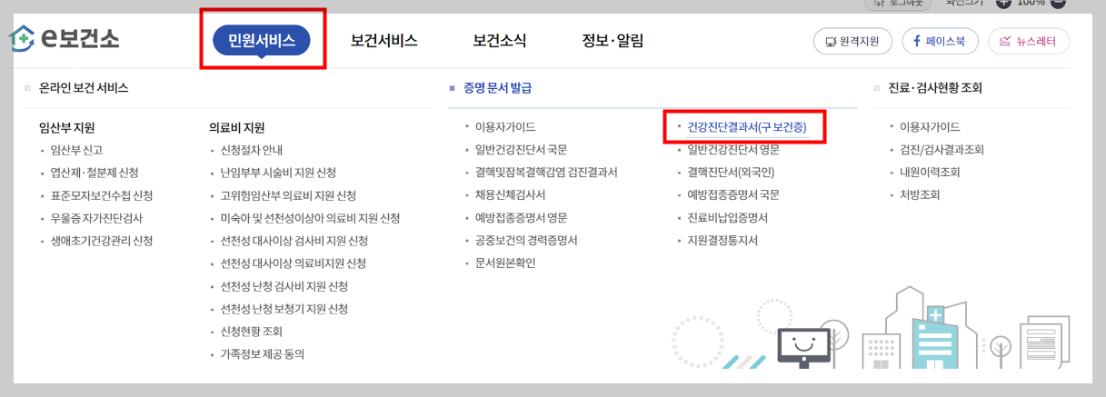 검색어: 보건증, 검사항목, 인터넷발급, 공공보건포털, 발급방법