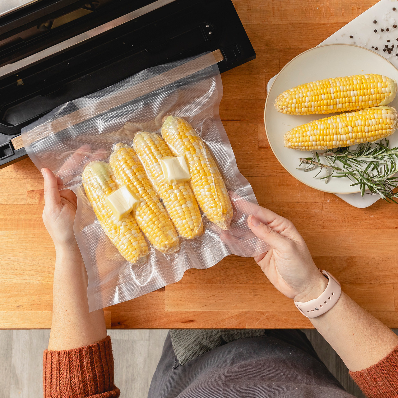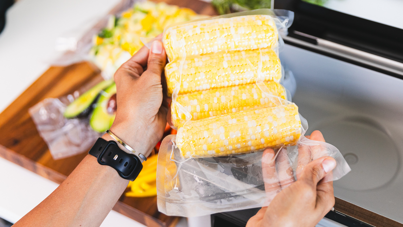 • 진공포장이 가능하면 통옥수수는 랩+진공, 알갱이는 평평하게 펴서 패킹합니다.