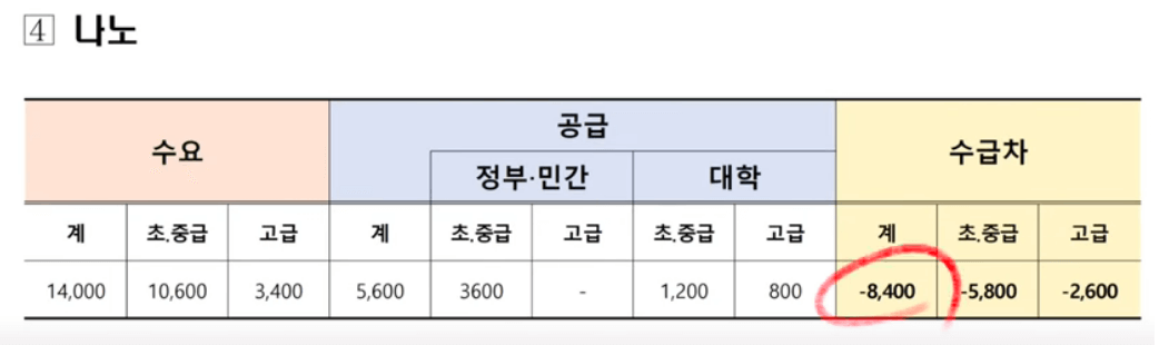 - 나노 분야: 8,400명 부족
