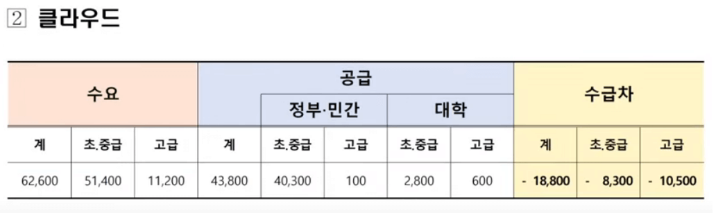 - 클라우드 분야: 18,800명 부족