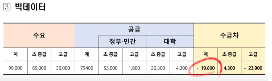 - 빅데이터 분야: 19,600명 부족