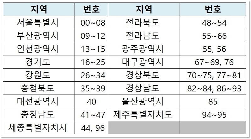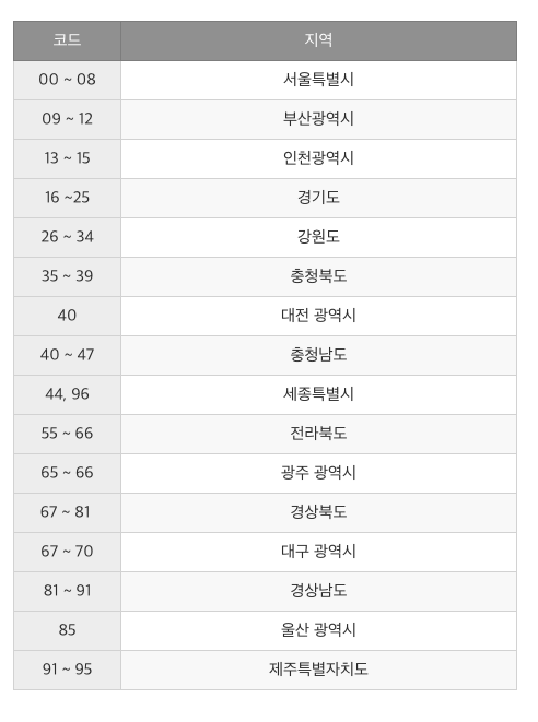 주민번호 뒷자리 의미 지역번호 지역코드 성별 해석