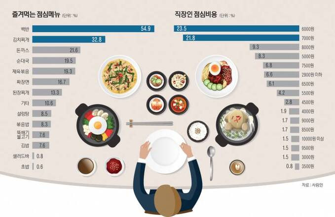 직장인 점심 메뉴 순위 Best 10 — 무엇을 먹을까?
