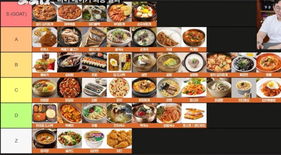 - 흥미롭게도 온라인 커뮤니티에서는 티어리스트 방식으로 메뉴 순위를 매기기도 하는데, 그 중 S급 메뉴에는 제육볶음, 돼지김치찌개, 돼지불백, 부대찌개, 순두부찌개가 포함된다는 평가도 있습니다.