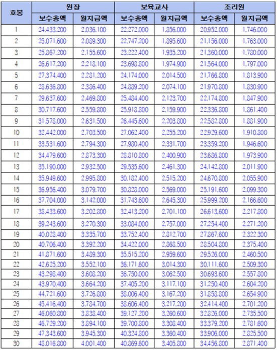 보육교사 호봉표