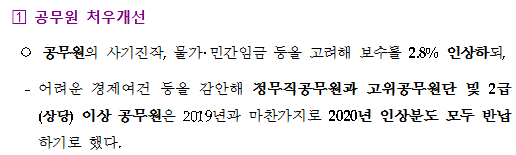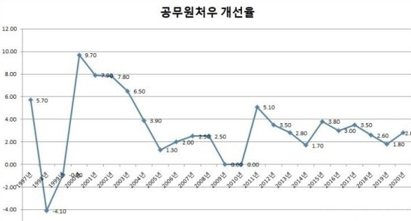 이에 따라 최근 공무원 처우개선이 안된 측면이 있어 공무원 보수위원회에서 권고한 가장 낮은 수준이 2.8%로 정해진 공무원 봉급 인상이라고 합니다.