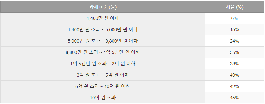 주의사항: 실제 세금 계산 시에는 소득 공제, 세액 공제 등 다양한 요소가 반영되므로, 위 표는 기본적인 세율 적용을 위한 참고 자료로 활용하시기 바랍니다.