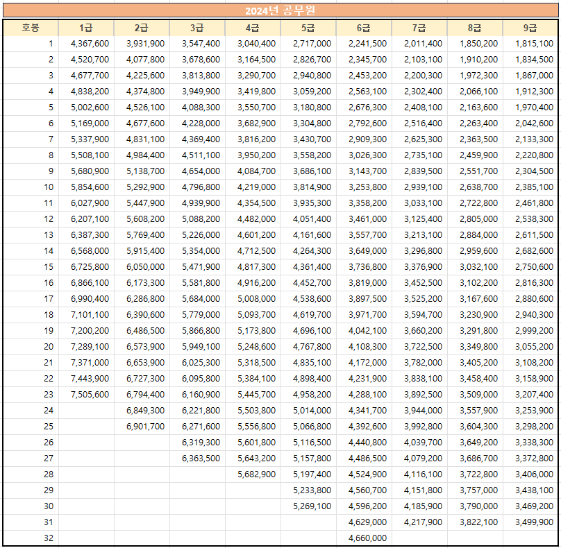2024 공무원 봉급표와 교사 호봉표: 미래를 예측해보자