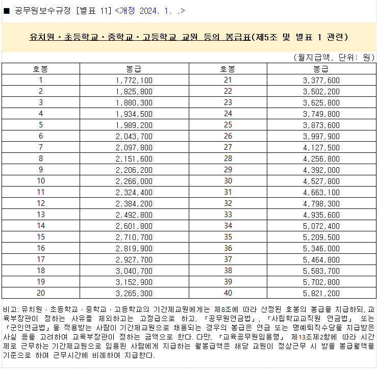 2024 공무원 봉급표와 교사 호봉표: 미래를 예측해보자