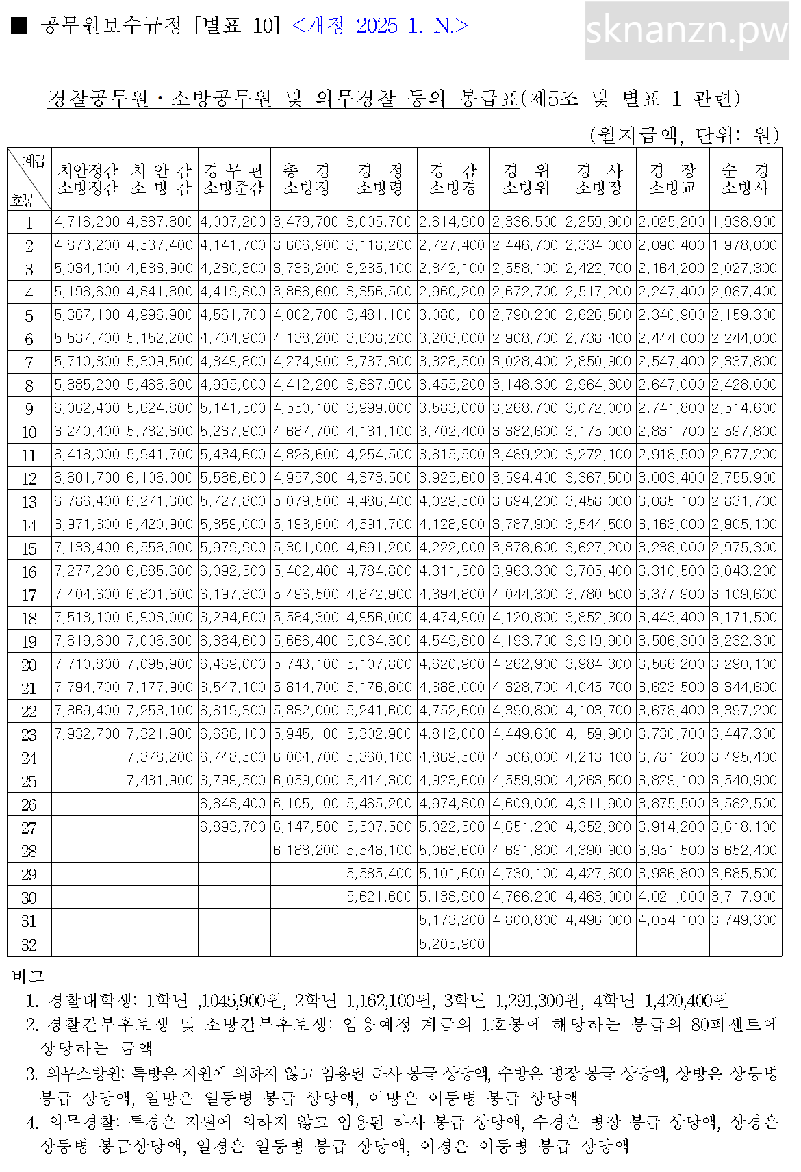 2025년 경찰공무원 봉급표 2025 교사 호봉표, 2025년 군인 월급