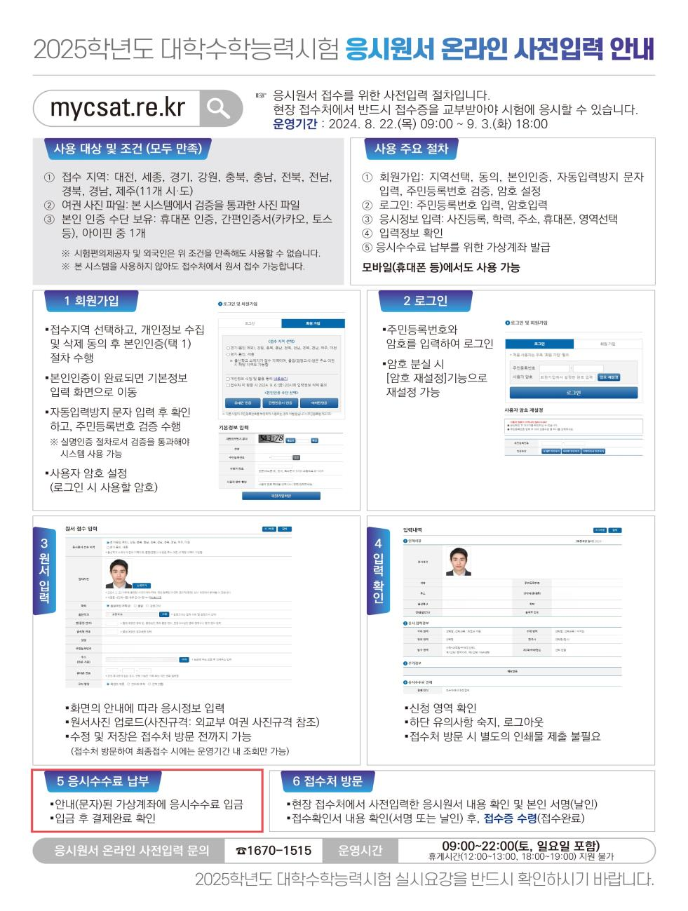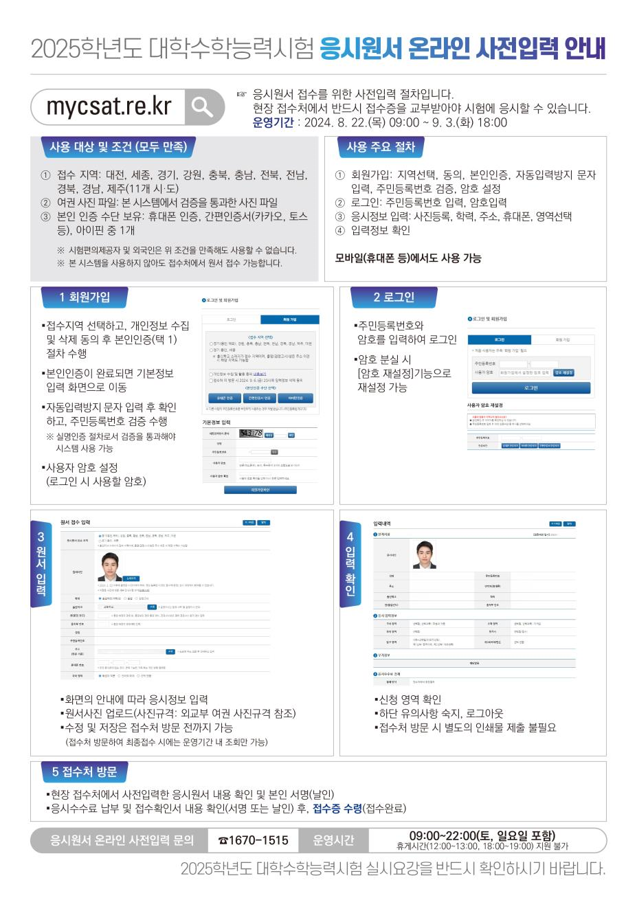 - 인터넷 원서 접수: 2024년 9월 9일(월)부터 9월 13일(금)까지 원서 접수가 가능합니다. 이 기간을 놓치면 수시 지원 자체가 불가능하므로 정확한 시간 안에 접수를 완료해야 합니다.