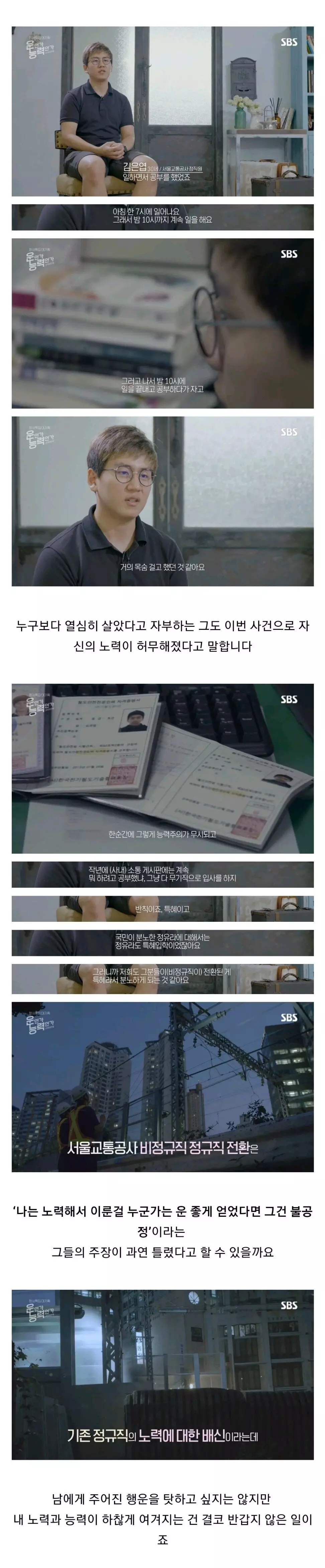 좋은 대학 가기 위해서 노력한 거랑, 좋은 직장 취업하기 위해서 노력한 거는 인정 안 해주나? 지금 선발기준을 가지고 이야기하는 건데 일 잘하고 못하고 가 왜 나오는지? 본질을 흔들지 말자고. 위에 비정규직 없이 일해보든가라고 댓글 다는 얘는 비정규직인가?